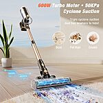 Model: VBUOO Cordless Vacuum Cleaner, Upgraded 600W 50KPA 70Mins Vacuum Cleaners for Home, Self-Standing Stick Vacuum, Wall Mount Charge & Touch Screen, Anti-Tangle for Pet Hair Carpet Hardwood Floor Car