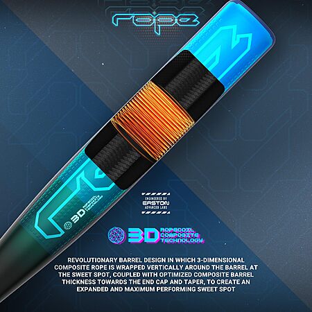 3D ROPE COIL COMPOSITE | Patented 3-dimensional composite rope wrapped around the barrel for maximum performance across the entire sweet spot.