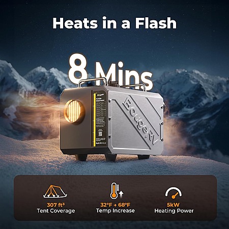 BougeRV 12V 5KW Portable Diesel Heater w/ Timer & Thermostat $225.62 + Free Shipping
