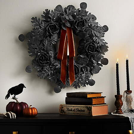 - Elegant Design: Features a sophisticated blend of black oak leaves and black roses, creating a dramatic and upscale seasonal accent.