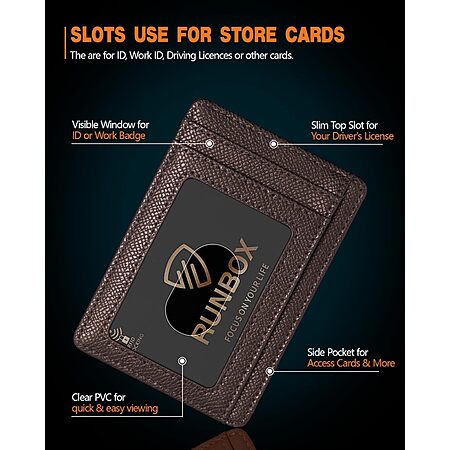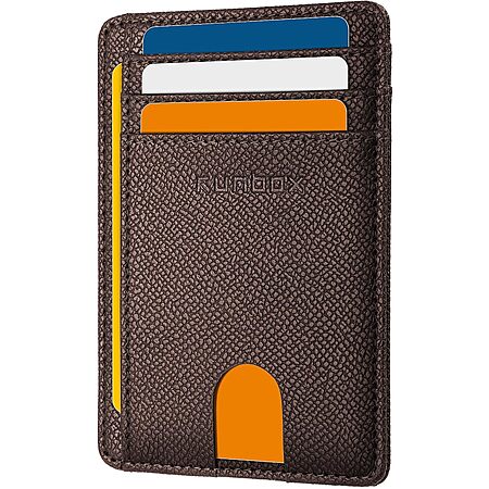 RUNBOX RFID Front Pocket Slim Wallet w/ ID Window (Carbon Black) $4.55, (Palm Lines Coffee) $4.79 & More + Free Shipping w/ Prime or on $35+
