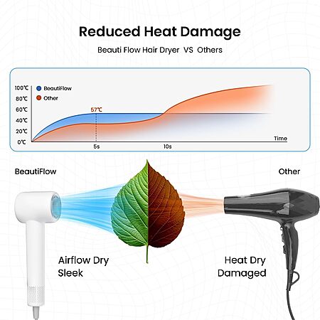 Hair Dryer, BeautiFlow 110,000 RPM High-Speed Brushless Motor Ionic Blow Dryer | $58.09