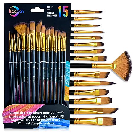 Jsocoah via Amazon [amazon.com] has 15-Piece Jsocoah Paint Brush Set on sale for $9.99 - 50% off when you enter the coupon code XLO3A9A2 = $4.99. Shipping is free w/ Prime or on $35+.