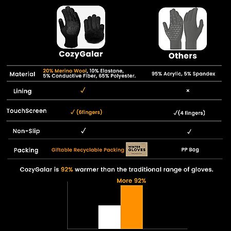 - 【What you get】1 pair of Coziest Gloves, Recyclable Eco Box*1, CozyGalar industry-leading 1-year care.