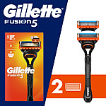 Gillette Fusion5 Razor Men 5 Blade Manual Razor, 1 Handle and 2 Blade Refills, Black