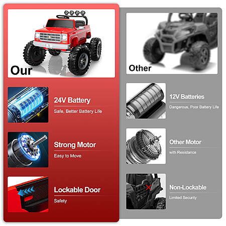Chevrolet Cheyenne 24V 7Ah Kids Ride on Car, Wisairt 2 Seater Battery Powered Electric Vehicle w/ Remote Control, LED Lights, Music, Kids Ages 3-8(Red)Chevrolet $329.89