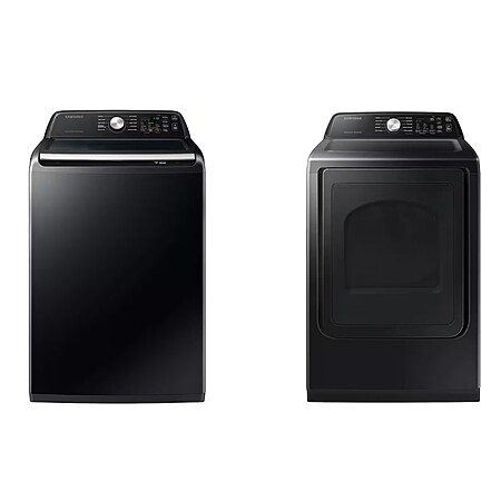 Package - Samsung - 4.6 Cu. Ft. High-Efficiency Smart Top Load Washer with ActiveWave Agitator and 7.4 Cu. Ft. Smart Electric or Gas Dryer with Sensor Dry - Black $899.98