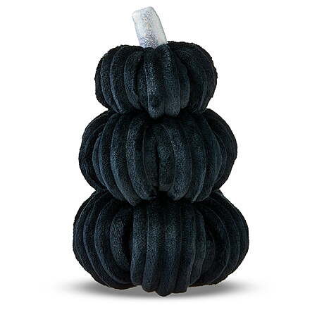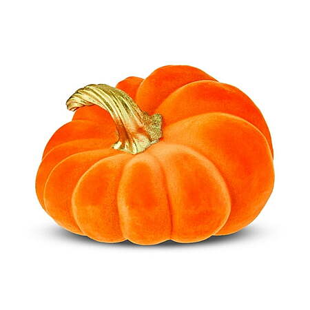 Way To Celebrate Halloween Wilted Pumpkin Decorative shelf accent with a wilted pumpkin shape. Coated in vibrant orange flocking for soft texture. Finished with a sculpted metallic gold stem. Measures 6" wide and 4" tall. Perfect for shelves, mantels, and autumn displays.