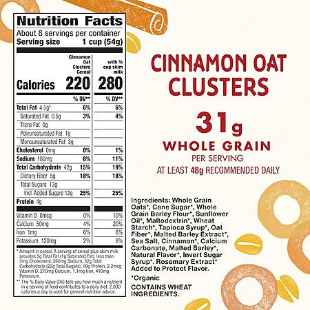 Model: Cascadian Farm Organic Cinnamon Oat Clusters Breakfast Cereal, Made With Whole Grain, Non-GMO, 15 oz