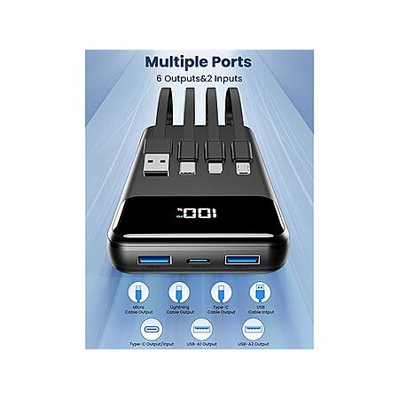 OHOVIV 50000mAh Power Bank with Built In Cables