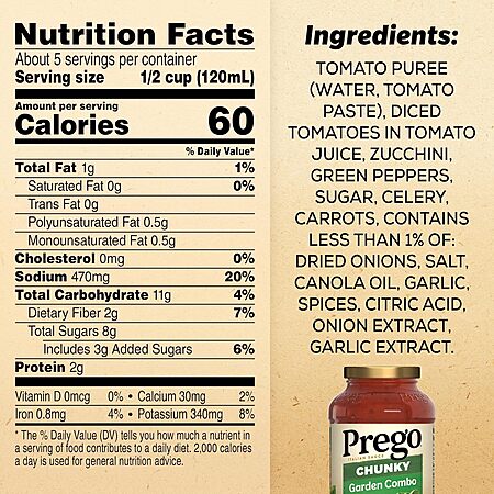 Model: Prego Chunky Garden Combo Pasta Sauce, 23.75 Oz Jar