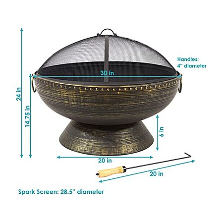 This wood-burning fire pit set includes a mesh spark screen protector for added safety from flying sparks, a poker tool to easily control the flames or logs in the fire, and a wood grate for better air flow.