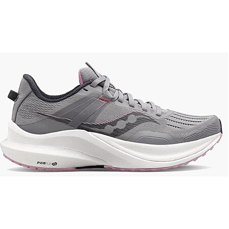 Combining superfoam bounce with an adaptive guidance system, the women's Saucony Tempus road-running shoes provide a smooth ride from heel to toe, yet are snappy on the take off.