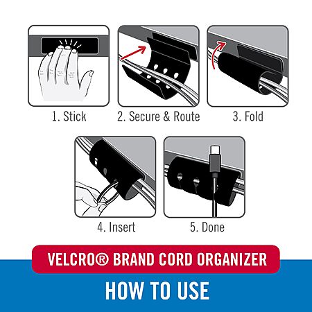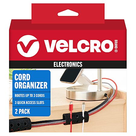 Model: VELCRO Brand Cord Organizer for Desk Cable Management Nightstand Organization Unique Dual Function Holds Wires for Easy Access Route to Hide Small 2pk Black