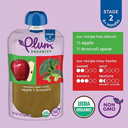12-Pack 4-Oz Plum Organics Stage 2 Organic Baby Food (Apple and Broccoli) $7.75 w/ S&S + Free Shipping w/ Prime or on $35+