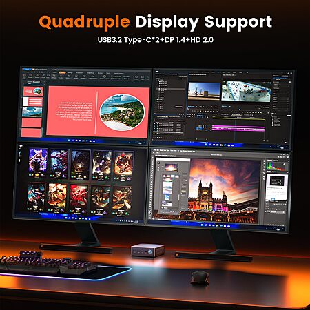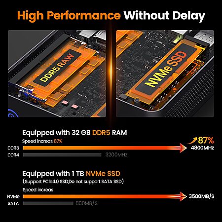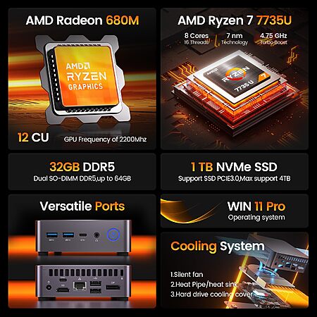 PELADN Mini PC Gaming, Ryzen 7 7735U (8C/16T, up to 4.75Ghz),32GB DDR5/1TB NVMe SSD,Dual Type-C/DP/HD,Mini Desktop Computer,WiFi6 4K/60Hz Quadruple-Display USB3.2/BT5.2 $323.39