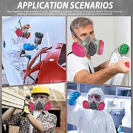 | Product Description: | When should I replace the filter cotton? When the breathing resistance is obviously too large, the human body feels uncomfortable, or the filter is dirty or damaged, the filter cotton needs to be replaced. The filter cotton is usually replaced every 5 days (the service life may be extended or shortened depending on your environment). [Production Material] - The respirator mask is made of brand new plastic and food grade soft silicone, which perfectly fits the face without odor or irritation. It has excellent sealing and will not feel oppressed when worn for a long time. [Equipped with 60926 Cartridges] - the Gas mask with 60926 cartridge filter, efficient dual filtration system, effectively blocking organic vapors, chlorine, hydrogen chloride, hydrogen fluoride, hydrogen sulfide, oily particles, and non oily particles. The filtration efficiency is as high as 99.97%. [Reusable] -The half face respirator can be reused, as long as the ink cartridge filter element is regularly replaced (RD40 universal interface is compatible with multiple models of filters) [Widely used] - This Dust mask provides effective protection for your life and work professionally. Anti gas masks are suitable for painting, woodworking, construction, chemical engineering, welding, dust removal, resin, lawn cutting, etc. Their size can be adjusted and are suitable for most people to use. [After sales support] - (Package includes: 1 x 6200 half face respirator and 2 x 60926 Cartridge filters) We are very confident in the quality of this gas mask, but if you have any suggestions for our product, please feel free to contact us at any time. We provide friendly service and satisfactory solutions. |