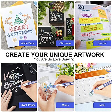 - 【Easy To Use】 You simply shake the special shimmer pens first then press down a few times to activate the ink flow. Re-Cap the marker pens Immediately After Use and Store Horizontally. Ink is suitable to use on light color cardboard papers