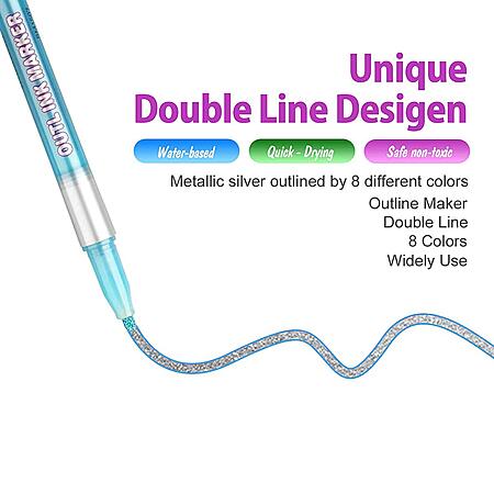 Product Description from Amazon:- 【8 Glitter Colours】Outline Markers include 8 different colors containing shimmering ink. Unique technology produces outlines for you automatically to create a beautiful dual-color effect