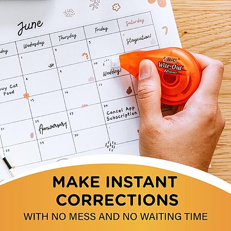 10-Count BIC Wite-Out EZ Correct Tear-Resistant Correction Tape (White) $9.34 ($0.93/ea) w/ S$S + Free Shipping w/ Prime or on $35+