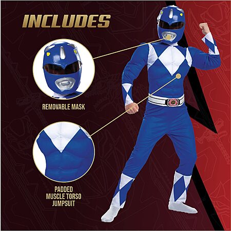 Amazon [amazon.com] has Blue Power Ranger Costume Jumpsuit and Mask (Small 4-6) for $6.24. Shipping is free w/ Prime or on $35+.
