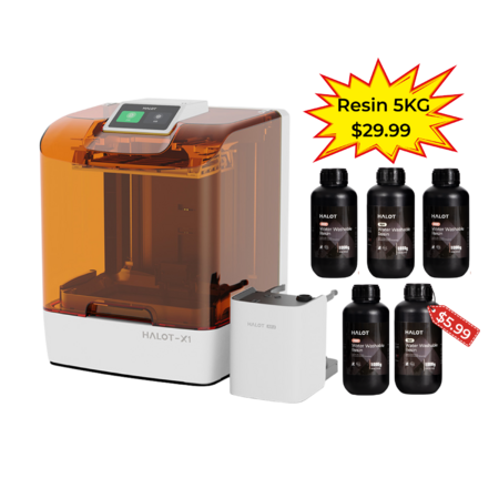 Piocreat Halot X1 combo [creality.com] includes the printer, the AFU (Auto Feed Unit) plus 5 x 1kg bottles of resin. The price is $538.99 when you use the code MKE16X, and shipping is free.