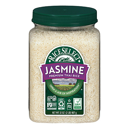 RiceSelect Premium Thai Jasmine Rice, Gluten-Free, Non-GMO, SRP Verified, 32 oz Jar
