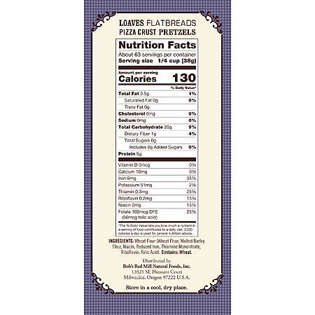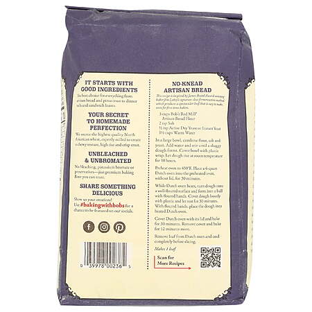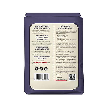 | Product Description: | Whether you're baking bread by hand or with a bread machine, this is the flour for you! Bob’s Red Mill Artisan Bread Flour is a premium high-protein flour milled from America's highest quality wheat. It’s a favorite of craft bakers due to its high gluten content, and great for sourdough bread, baguettes, pizza dough, dinner rolls, sandwich loaves, pretzels, bagels and more. Keep it stocked in your pantry for homemade perfection, every time. AMERICA'S BEST BAKING FLOUR: The higher protein content of Bob’s Red Mill® Artisan Bread Flour makes it ideal for chewy sourdough bread, authentic baguettes, crackly pizza crusts, golden-brown pretzels and more YOUR SECRET TO HOMEMADE PERFECTION: Sourced from the highest quality North American wheat; expertly milled to create a chewy texture, high rise and crisp crust GOODNESS IN EVERY GRAIN: Trusted by professionals and home bakers alike, Bob’s Red Mill® Artisan Bread Flour brings quality to every bake; enhance your loaves and experience the joy of baking with its superior flavor and texture UNBLEACHED & UNBROMATED: No bleaching, potassium bromate or preservatives—just premium baking flour you can trust IT STARTS WITH GOOD INGREDIENTS: A leader in natural foods since 1978, Bob’s Red Mill is committed to good ingredients made with the passion and expertise of our founder, Bob Moore; proudly 100% employee owned |