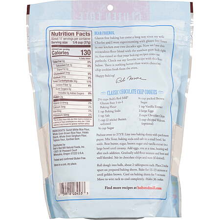 | Product Description: | Bob’s Red Mill Gluten Free 1-to-1 Baking Flour makes it easy to enjoy your favorite baked goods without gluten. This premium flour blend combines gluten free flours, starches, and xanthan gum, so you can replace wheat flour in your recipes with ease. Whether you’re making cookies, cakes, brownies, muffins, or pancakes, you can continue using your regular recipes—just swap in this flour and bake as you normally would. No complicated adjustments needed! Perfect for anyone who loves baking but needs a gluten free option. GLUTEN FREE MADE EASY: Bob’s Red Mill expertly crafted a one-to-one blend of gluten free flours, starches and xanthan gum; effortlessly transforms traditional cookies, cakes, brownies, muffins and pancakes into gluten free treats TESTED AND CONFIRMED GLUTEN FREE: Tested and confirmed gluten free in a 100% dedicated gluten free facility; safe for those with celiac disease or gluten sensitivity NO SPECIALTY INGREDIENTS NEEDED: Making delicious gluten free baked goods is a snap with this Gluten Free 1-to-1 Baking Flour blend; simply follow your favorite baking recipes and replace wheat flour with this easy-to-use blend GOOD INGREDIENTS FOR ALL: Bob’s Red Mill measures and blends superior gluten free flour blend which works wonderfully in recipes that call for baking powder or baking soda; not for yeast breads INCREDIBLY VERSATILE: Ideal for gluten free baking, including cookies, cakes, brownies, muffins and more; thickens sauces and gravies; makes delicious gluten free pasta; use to bread proteins and so much more IT STARTS WITH GOOD INGREDIENTS: A leader in natural foods since 1978, Bob’s Red Mill is committed to good ingredients made with the passion and expertise of our founder, Bob Moore; proudly 100% employee owned |