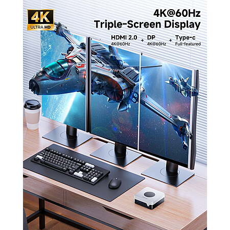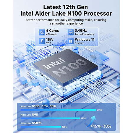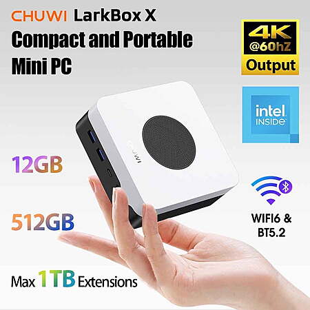 | Product Description: | 【Powerful 12th Gen Intel Alder Lake N100】CHUWI LarkboX X Mini PC computer is powered by the latest 12th Gen Intel Alder Lake-N100 Processor (4C/4T, 6MB Cache, up to 3.4GHz,TDP15W) and delivers more than 25% higher performance than N5105/N5095. This mini desktop computer is the first choice for light office work, 4K video playback, online education, design, and more. 【12GB LPDDR5 RAM 512GB SSD】CHUWI 2025 mini PC Built-in with 12GB LPDDR5 RAM and 512GB SSD. The M.2 2280 SATA3 SSD also supports storage upgrades up to 2TB. This Windows 11 Mini computer allows you to switch between more applications and store more favorite documents or movies. Includes VESA mount to set up an all-in-one PC and free up desk space. Built-in fan cooling, so you don't have to worry about product overheating during multitasking. 【4K HD 3-Screen Display】Larkbox X Intel N100 mini PC supports 3-screen simultaneous output (Full featured Type-C, DisplayPort, HDMI), and double your productivity with expanded multiple workspaces. With 12th Gen Intel UHD graphics, the resolution is up to 4K@60Hz. Enjoy smooth 4K UHD video at home and deliver a great TV experience with true-to-life picture quality. Ideal for visual home entertainment, home office, conference room, etc. 【Stable WiFi 6 & Fast BT5.2】CHUWI mini computer has 2.5G and 1G Gigabit Ethernet, WiFi 6, and Bluetooth 5.2, enabling easy connection and high-speed data transfer. Wi-Fi 6 boasts speeds up to 3x faster than Wi-Fi 5, you can quickly browse websites, stream movies without buffering, and download files with ease. Bluetooth 5.2 allows quick connections to your wireless keyboard, mouse, speakers, and other devices, freeing you from the mess of wired desktops. 【Ultra lightweight & Multi-function Ports】Compared to the traditional desktop computer, Size of only 5.0x5.0x1.9inch, and weighs only 400g, making it easier to carry and move anytime, anywhere. This micro pc comes with multiple interfaces (2*USB3.2 Gen2, 2*USB 3.0 Gen1, 1*HDMI 2.0, 2* RJ45 LAN, 1*Audio Jack, 1*DC Jack, 1*DP port, 1*type-C). The new upgraded USB3.2 Gen2 ports run at up to 10 Gbps speeds, which is 2 times faster than USB3.0. Processor: 12th Gen Intel Alder Lake N100 Processor Graphics: Intel UHD Graphics for 12th Gen Intel Processors Video Output: 4K@60Hz Storage: 512 G SSD (PCIe) Memory: 12 GB LPDDR5 Charging: 19 V/4.74 A Dimension: 127*127*49 (H) mm Main I/O Ports: USB 3.2*2, USB 3.0*2 , 3.5 mm Microphone Jack*1, 3.5 mm Headphone Jack*1, HDMI 2.0*1, Gigabit Ethernet*1, Display Port*1, DC Port*1 Wireless: WIFI6 (802.11ax) Bluetooth: Bluetooth 5.2 Operating System: WIN11 In the Box: 12 V/3 A, 65W DC Power Adapter PSE, CE, UL, FCC certified Processor: 12th Gen Intel Alder Lake N100 Processor Graphics: Intel UHD Graphics for 12th Gen Intel Processors Video Output: 4K@60Hz Storage: 512 G SSD (PCIe) Memory: 12 GB LPDDR5 Charging: 19 V/4.74 A Dimension: 127*127*49 (H) mm Main I/O Ports: USB 3.2*2, USB 3.0*2 , 3.5 mm Microphone Jack*1, 3.5 mm Headphone Jack*1, HDMI 2.0*1, Gigabit Ethernet*1, Display Port*1, DC Port*1 Wireless: WIFI6 (802.11ax) Bluetooth: Bluetooth 5.2 Operating System: WIN11 In the Box: 12 V/3 A, 65W DC Power Adapter PSE, CE, UL, FCC certified |