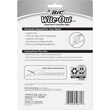 Model: BIC Wite-Out Brand Exact Liner Correction Tape, 19.8 Feet, 4-Count Pack of white Correction Tape, Fast, Clean and Easy to Use Tear-Resistant Tape Office or School Supplies