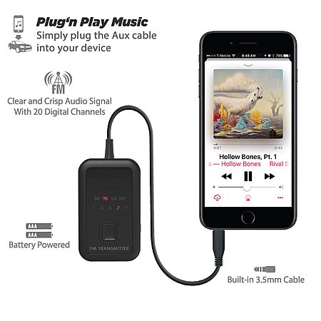 Amazon.com has Scosche FMT7-SP1 Tune-Tone FM Stereo Transmitter with Built-in 3.5mm AUX Cable on sale for $7.99. Shipping is free w/ Prime or on orders $35+.