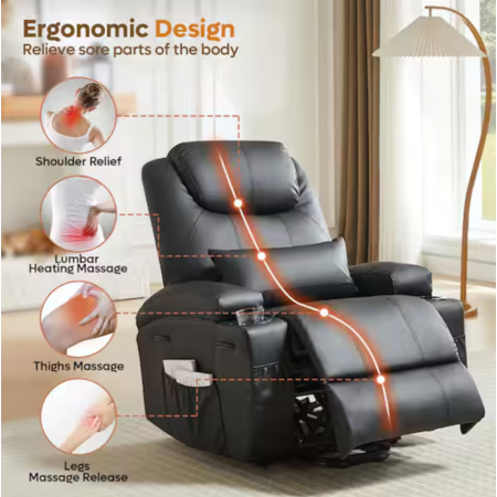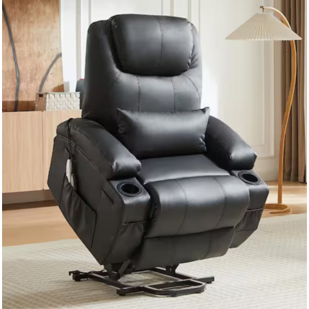 35 in. W Black Power Lift Recliner Chair with 8-Point Massage and Heating,Living Room Chair with Pillow and Side Pockets