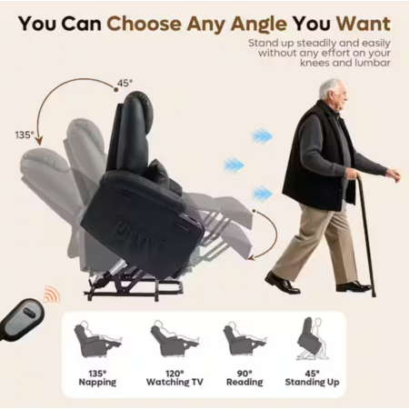 - Power Lift Assistance:The electric lift chair rises slowly to allow elders to stand easily, the gentle lift-assist mechanism slowly raises the seat to help elderly or anyone with stiff joints stand up smoothly and safely