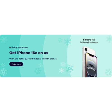 "Limited time offer while supplies last. Device taxes and fees may apply. Requires new activation on a Total 5G+ Unlimited or higher 3-month plan, external port in, and ID Verification. Available exclusively at Total Wireless stores."
