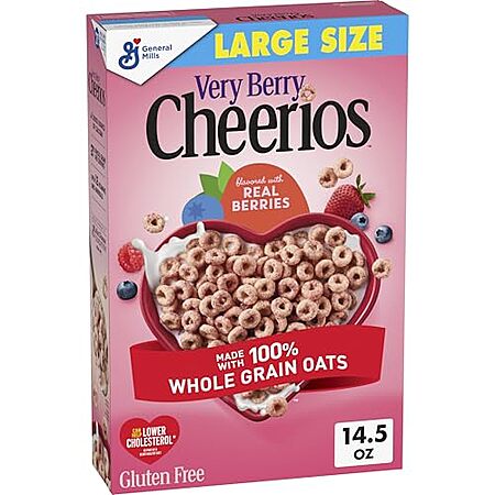 Amazon[amazon.com] has 14.5-Oz Cheerios Very Berry Heart Healthy Gluten Free Breakfast Cereal for $2.96 - 25% when you 'clip' the coupon on product page - 5% when you check out via Subscribe & Save = $2.07. Shipping is free with Prime or on $35+ orders.
