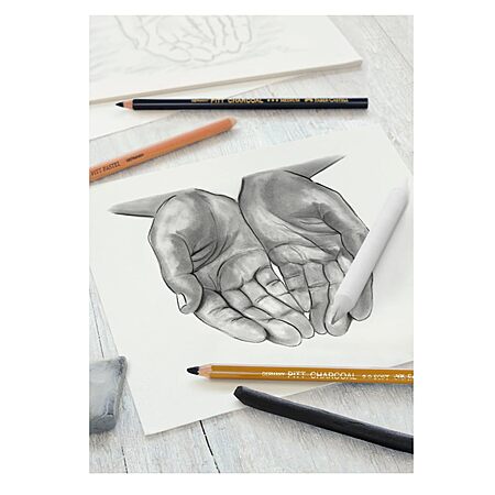 - COMPLETE CHARCOAL PENCIL SET – Includes 2 Natural Faber-Castell Pitt Charcoal Sticks (6-11 mm), a Pitt Natural Charcoal Pencil (medium), Pitt Compressed Charcoal Pencil (soft), Pitt Pastel Pencil (white, medium), paper blender and a kneaded eraser