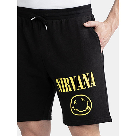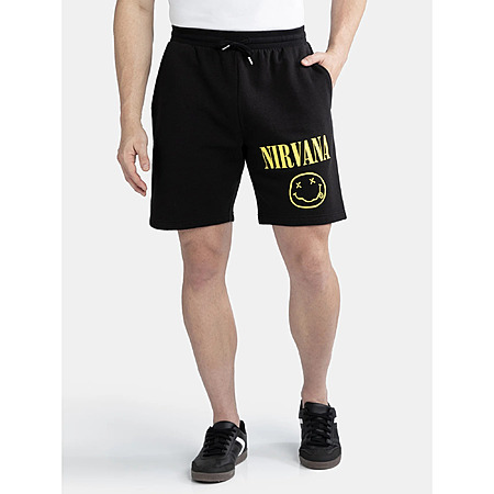 Nirvana Men’s Smiley Graphic Fleece Shorts (S, M, L) $7.3