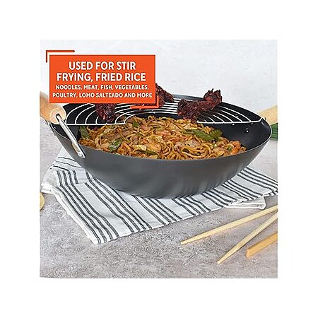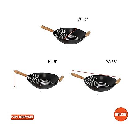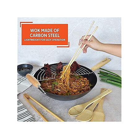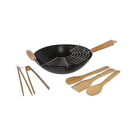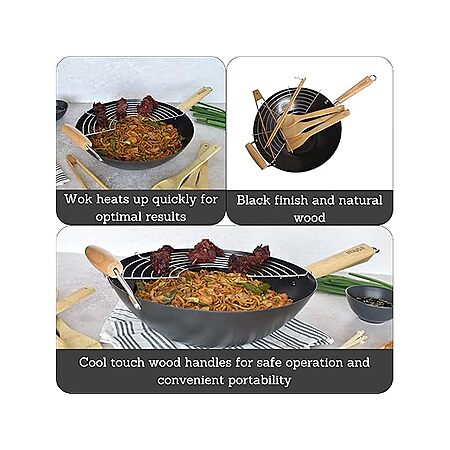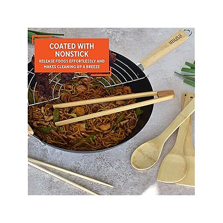 IMUSA 7pc Carbon Steel Nonstick Wok Set with Bamboo Kitchen Tools, Black $27.99