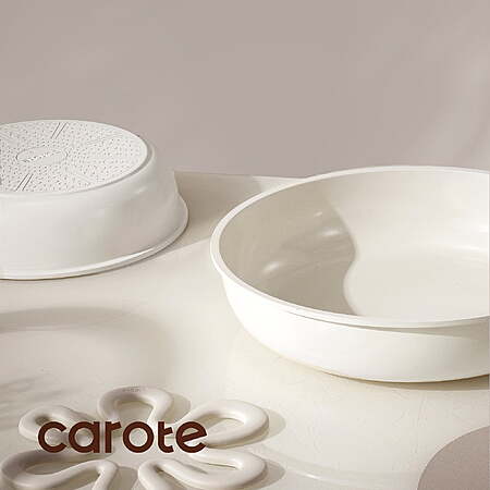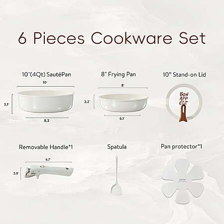 $29.99*:Carote 6 Pcs Ceramic Nonstick Pot and Pan Set, Nonstick Cookware Set with Lid & Detachable Handle, Oven Safe, Induction Ready, Stackable, Cream White