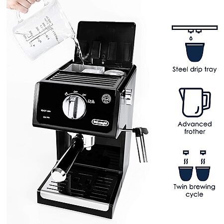 Model: De'Longhi ECP3120 15 Bar Espresso Machine with Advanced Cappuccino System, 9.6 x 7.2 x 11.9 inches, Black/Stainless Steel