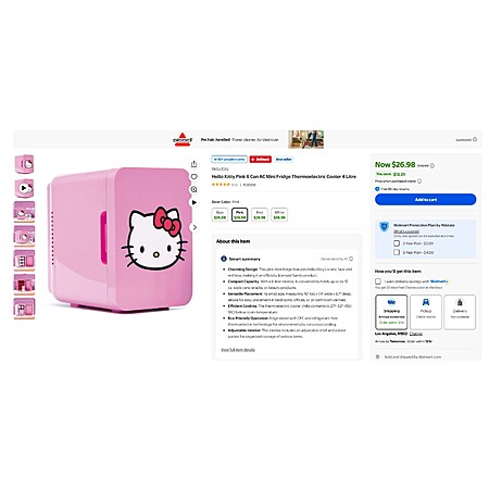 Charming Design: This pink mini fridge features Hello Kitty's iconic face and red bow, making it an officially licensed Sanrio product.