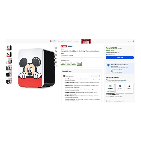 Disney Mickey Black 6 Can AC Mini Fridge Thermoelectric Cooler 4 Litre [walmart.com]