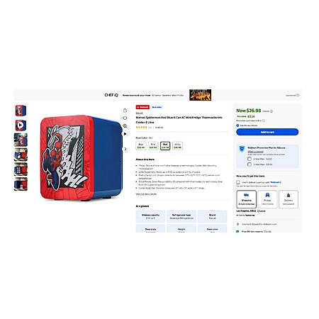 Marvel Spiderman Red Blue 6 Can AC Mini Fridge Thermoelectric Cooler 4 Litre [walmart.com]