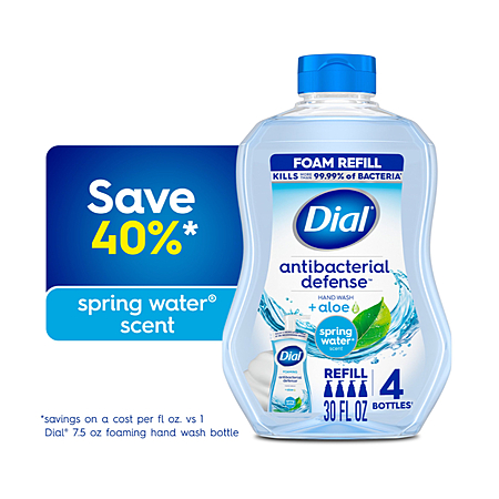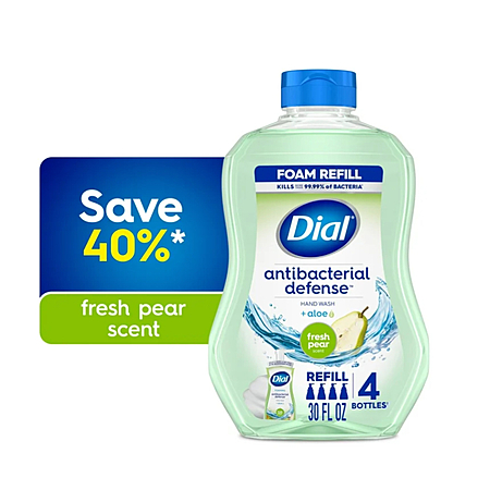 Dial Antibacterial Defense Foaming Hand Soap Refill, 30 fl oz (Spring Water or Fresh Pear) - $5.74 + $2 Walmart Cash $5.97