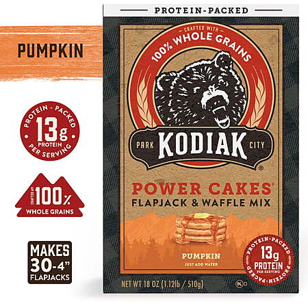 Kodiak Protein-Packed Power Cakes Pumpkin Pancake and Waffle Mix, 18 oz Box~$2.86 @ Walmart~Free Store Pickup Or Delivery With Walmart+~Buy 2 Get $1 Cashback!