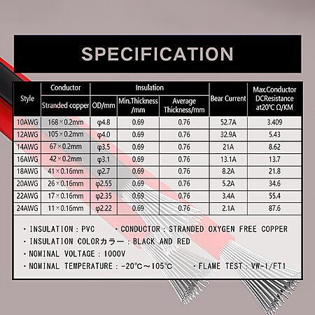 Stranded Oxygen Free Copper 20 Gauge Flexible Electrical Wire, 10FT Black and 10FT Red at Amazon $3.25