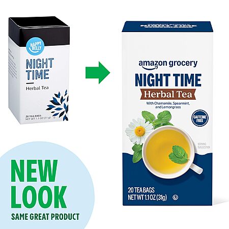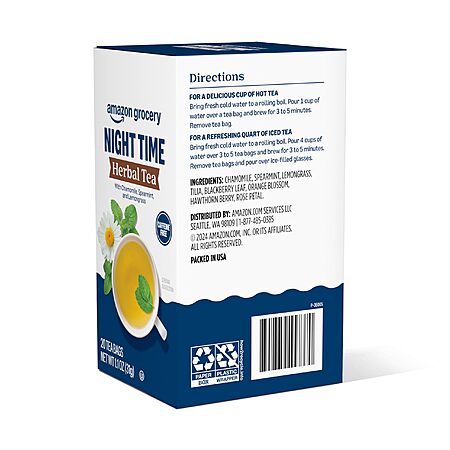 Amazon Grocery, Night Time Herbal Tea, Caffeine Free, 1.1 Oz, 20 Ct $1.27
