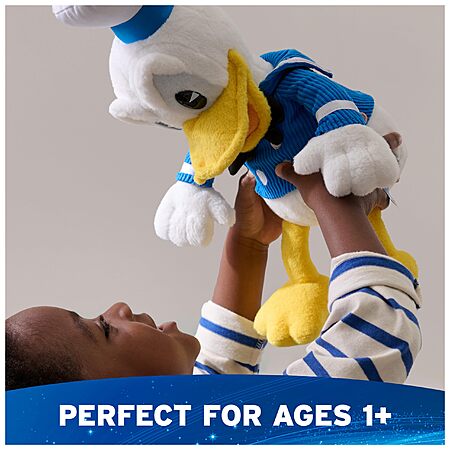 - DELUXE DONALD DUCK PLUSH: This soft 14" plush features Disney's Donald Duck in his signature sailor outfit with deluxe fabrics, including a blue corduroy shirt with white satin ribbon lining, embroidered buttons, and a soft matching sailor cap