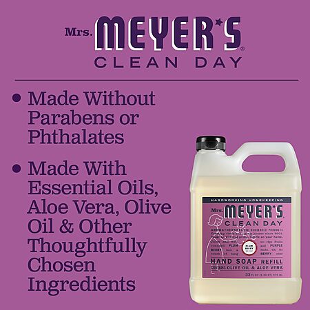 33-Oz Mrs. Meyer's Clean Day Liquid Hand Soap Refill (Plum Berry Scent) $9.49 + Free Shipping w/ Prime or on $35+